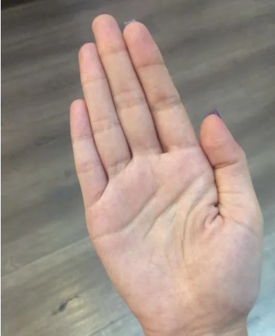 拇指和无名指之间的感觉线断裂。